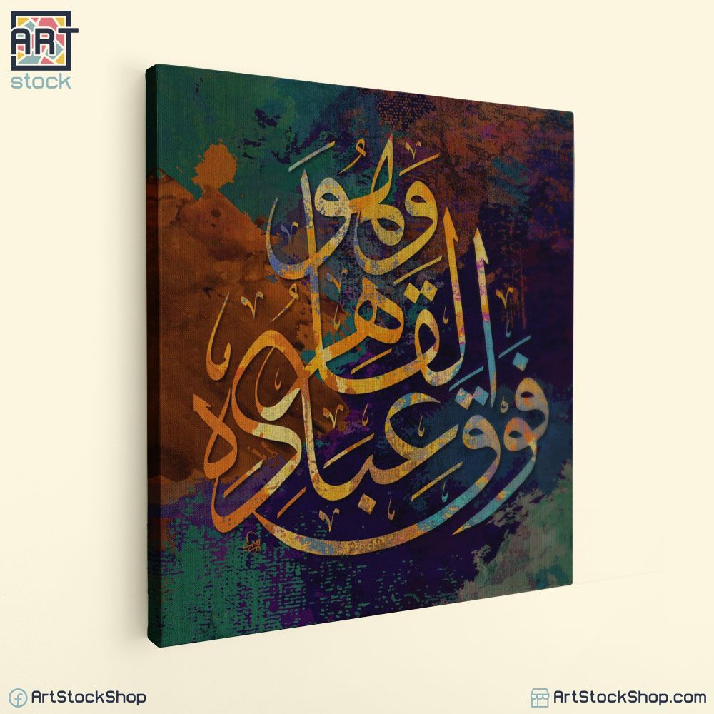 تابلوه مودرن اسلامى - عربى, بالوان احمر, ازرق, اصفر, , الشكل قطعه واحده مربع, مطبوع بجوده فائقه على كانفاس مخصص للاعمال الفنية مع ظهر كامل من الخشب تخانه 10 مم بالاضافه لطبقه حمايه اضافيه شفافة.